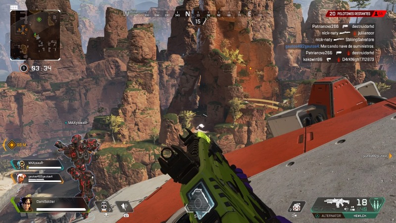 Y esa es solo una de las deudas del género que este nuevo exponente ha saldado. Es que partida a partida vamos descubriendo más y más detalles que nos encantan. A primeras podemos nombrar la desaparición del lobby previo, quizás ahora enmascarado por la elección de leyendas, que nos lleva directamente desde el menú principal a la partida. El aterrizaje compartido es otra idea muy interesante, que evita la clásica división del equipo cuando uno no consigue llegar a la zona con la misma facilidad. Para terminar, también debemos hacer mención de lo acertado que resulta que cada caja de munición tenga su color, para que sea rápidamente asociada con el arma correspondiente, y agradecemos que no hayan puesto una variedad absurda de estas.
