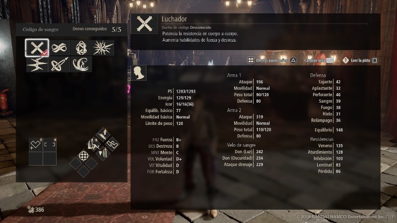 Durante el tutorial que tiene lugar después de la creación del personaje, se nos explica lentamente de qué se tratan los Códigos de Sangre y aún así es difícil no sentirse abrumado por su complejidad en un principio. En pocas palabras se trata de un sistema de clases, pero que en lugar de ser fijo se nos permite conseguir nuevos e ir cambiándolos siempre que queramos. Cada uno nos concede la posibilidad de elegir un sinfín de habilidades que se amoldan al estilo de combate que queramos adoptar y, aunque en un principio puede parecer tedioso tener que aprender tanta información y configuración de botones, resulta muy satisfactorio una vez que dominamos todo para convertirnos en un ser difícil de derribar.