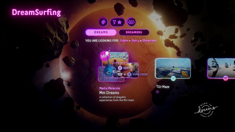 Lo bueno es que no estamos obligados a crear si no queremos y eso es el algo que Dreams nos lo pone en claro desde el principio. Si decidimos hacerlo las posibilidades son infinitas, pero si no también; hay una enorme cantidad de creaciones -en gran parte provenientes del acceso anticipado- para que todos puedan probar, encontrándonos con títulos independientes que realmente valen la pena y con los que es fácil perderse durante horas, demostrando que los límites de la obra de Media Molecule solo los ponen la comunidad.