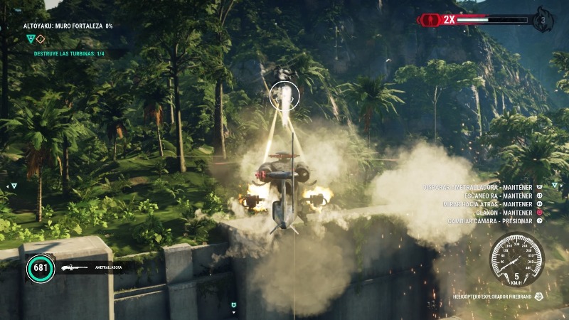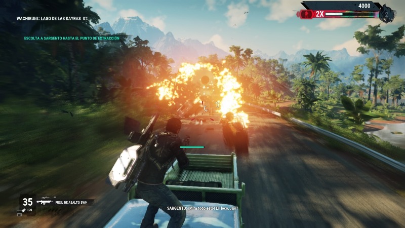 El arsenal que se nos presenta es el más completo de toda la saga, además de un amplio abanico de vehículos que pasan por el agua, la tierra y el aire. Todos estos elementos nos permiten vivir en una verdadera película de acción, de esas extremas en las que el protagonista es invencible y las explosiones están por todos lados. Es verdaderamente adictivo ponerse en la piel de Rico Rodríguez y desatar el caos de un segundo para el otro, pasando de un tiroteo contra decenas de enemigos a colgarnos de un helicóptero y empezar a disparar misiles para todos lados.