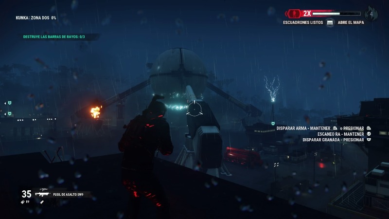 Y aunque Solís es un país paradisíaco, con sus rascacielos y sus playas de arena blanca, el Proyecto Illiapa lo ha arruinado un poco todo. Justamente uno de los protagonistas de Just Cause 4 es la descontrolada climatología, que nos presenta tormentas eléctricas destructivas e inmensos tornados. Lamentablemente creemos que ambos recursos no fueron aprovechados como deberían. Las tormentas son realmente poco relevantes, más allá de complicar un poco las cosas con los relámpagos, mientras que los tornados aparecen cuando la historia ya avanzó demasiado y regresan con muy poca frecuencia. Esto es una pena, más si tenemos en cuenta que cada vez que lo hacen nos regalan momentos épicos.