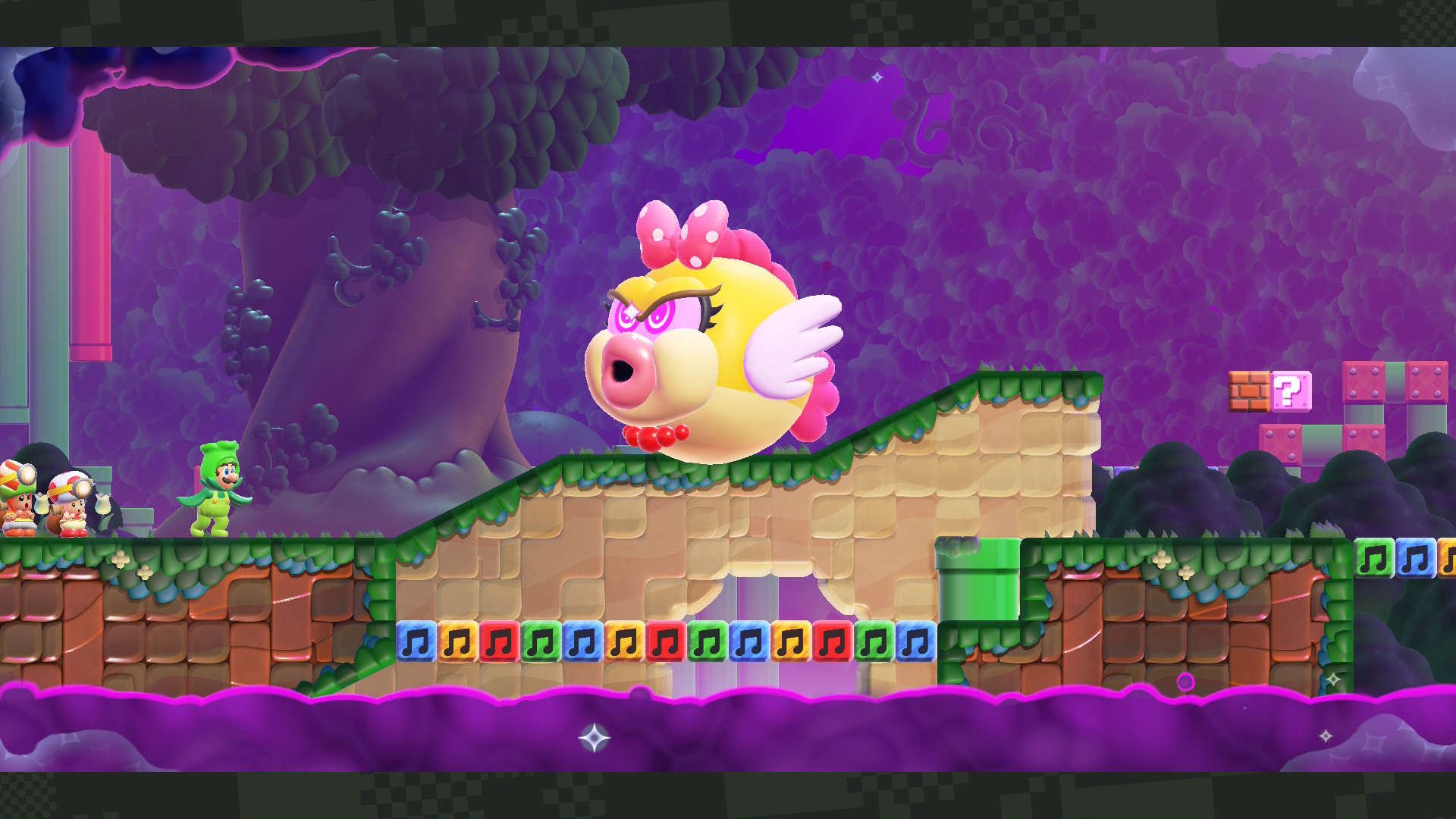 El nuevo parque cuenta con una riqueza de elementos típica de Mario. Con las flores y la jardinería como eje, el hub central del DLC es un atractivo espacio florido que recupera personajes viejos y nuevos. A su vez, estos personajes se diseminan por el mapa original de Wonder, incorporando nuevos objetivos a la historia. Los koopalings, vástagos de Bowser que debutaron allá en los 90 con Super Mario Bros. 3, son los nuevos rivales de esta saga, emulando a Bowser Jr. en sus atentados contra el reino champiñon. No llegan a la docena los niveles extendidos en lo que sería el modo historia de Bellabel Park, pero esa no es la verdadera apuesta del contenido extendido. En ese sentido, los jugadores solitarios podrán considerar algo magro este DLC, subrayando que no son el público principal del mismo.