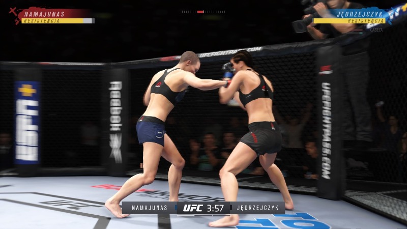A nivel sonoro el juego mantiene el nivel, con un gran reflejo de todo lo que se puede escuchar en cada una de las fechas de la mayor franquicia de artes marciales mixtas del mundo. Desde el estruendo que hacen los golpes al impactar de lleno contra el rival, hasta las voces de los presentadores y la locura de la afición, todo genera un combo altamente inmersivo. Lamentamos que sigan sin poner comentaristas en español y que la banda musical sea demasiado discreta, porque sino podríamos estar hablando de un título sobresaliente a nivel técnico. Eso sí, ya es marca registrada los larguísimos tiempos de carga de Electronic Arts, que cortan la fluidez de modos como la Carrera o las peleas online.