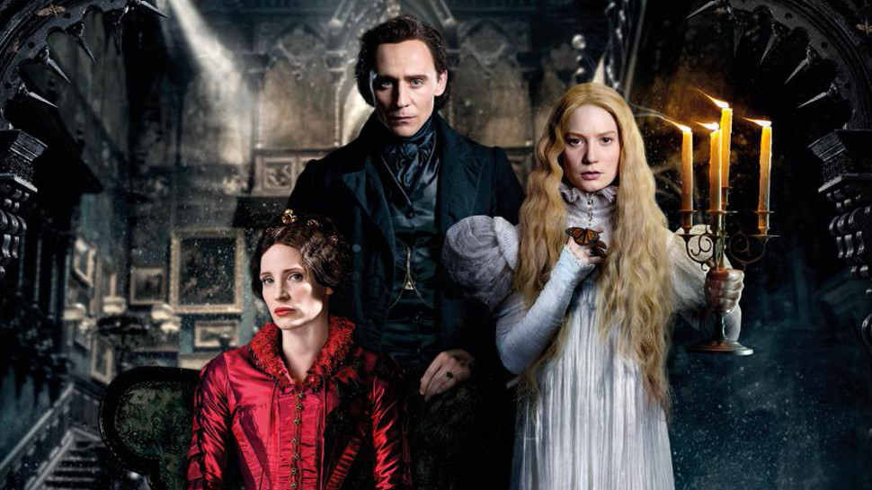 La historia contada despliega parte de su valor estético y su tono sombrío en las presencias fantasmales que rodean a la bella literata Edith (Mia Wasikowska), desde su fallecida madre quien intenta proteger de ella desde la ultratumba hasta el desfile de fantasmas que se aparecen en varios rincones de la laberíntica mansión (algunos de ellos interpretados por Doug Jones, un viejo amigo de la casa). Pero estos seres no impulsan al film ni poseen un rol decisivo para la historia, más bien dejan piezas que construyen el camino a seguir y lo acompañan desde cierta distancia, a veces cercanas y otras no. Alejado del terror y próximo al romanticismo gótico, el film lo deja en claro desde un principio en boca de Edith: “No es una historia de fantasmas, es una historia con fantasmas”. Cumpliendo con dichas palabras, la historia tendrá ciertos sobresaltos, los menos, y se centrará en el secreto de la misteriosa mansión y los hermanos dueños de la misma, Thomas y Lucille Sharpe (Tom Hiddleston y Jessica Chastain), dos personajes que poseen ese tono único y propio del gótico que con gran belleza resultan ser tanto aterradores como encantadores.